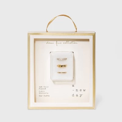 Add a little charming sparkle and shine to your outfits with the 14K Gold Plated Cubic Zirconia Ear Cuffs from A New Day™. These charming ear cuffs are made out of 14K gold-plated, nickel-free metal and feature cubic zirconia stone details that add a lovely touch of sparkle to your looks. Plus, the open-closure style allows for easy on/off.