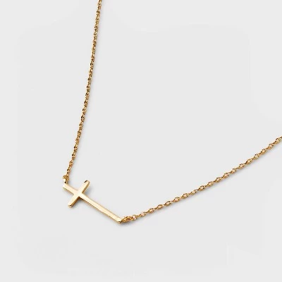 Get inspired with the 14K Gold Plated Stationed Cross Pendant Necklace from A New Day™. This gold-plated necklace features a cross pendant dangling at the center of the linked chain for a beautiful look. Designed with an extender chain for length customization, this cross necklace closes with lobster-claw clasp, and suit all types of skin with its nickel-free design.