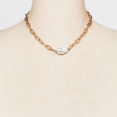 Refresh your own collection or gift a loved one with the Baroque Pearl Pendant Necklace from A New Day™. This gold-tone necklace features a baroque faux pearl dangling down at the center of the long-link chain for a standout look. Designed with an extender chain for length customization, this pendant necklace closes with lobster-claw clasp, and suit all types of skin with its nickel-free design.