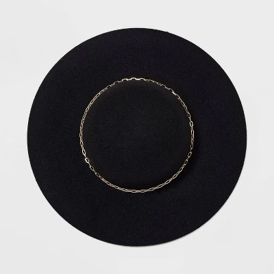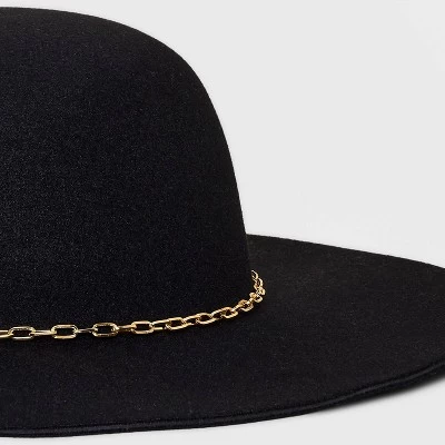 Flaunt your confident style as you step out in the sun in this Felt Floppy Hat from A New Day™. Featuring a pull-on design for easy wear, this floppy hat is crafted from heavyweight felt fabric for comfortable wear, while the adjustable design lets you find the best fit. Designed in a solid hue with a wide brim to help protect your face from direct sun rays, it features a round crown with a metal link chain accent in gold around it, making it an on-trend complement to your warm-weather ensembles.