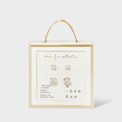 14K Gold Plated Cubic Zirconia Duo Stud Earring Set 2pc – A New Dayâ„¢ Gold