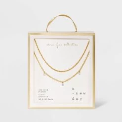 14K Gold Plated Pierced Cubic Zirconia Duo Necklace – A New Dayâ„¢