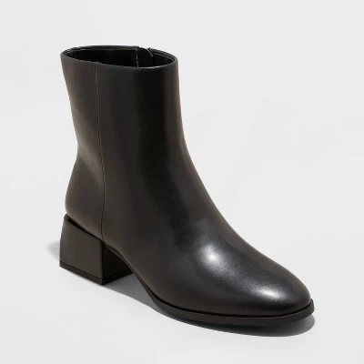 These Emmy Dress Boots from A New Day™ will take you from the office to happy hour in style. The ankle boots will keep you comfy all day long thanks to their memory foam footbed, soft lining and flocked outsole, and the two-inch block heel adds a noticeable lift to your height. With a faux-leather construction in classic black paired with a chic almond toe, these medium-width boots have a side zipper for easy wear and a secure fit.