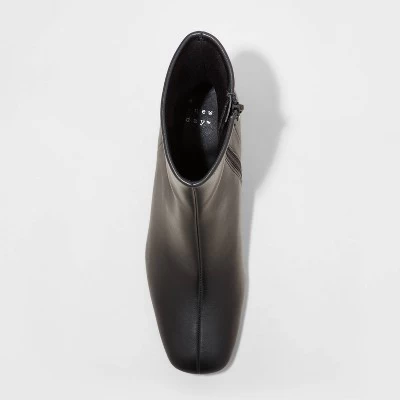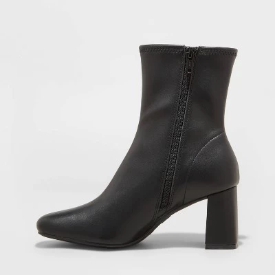 Complete your cooler-weather wardrobe with the standout look of these Pippa Stretch Boots from A New Day™. Boasting a cushioned insole, soft lining and D-toe style, these medium-width ankle boots give you both style and comfort. Set on a 2.75-inch block heel for a statement lift in your height, these faux-leather boots have a side zipper for easy wear and a secure fit.