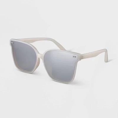 No need to compromise on your looks while you enjoy in the sun by using the Plastic Shield Sunglasses from A New Day™. These white sunglasses feature contrasting gray lenses for a timeless look. Designed with a recycled plastic frame, these shield sunglasses offer maximum UV protection.