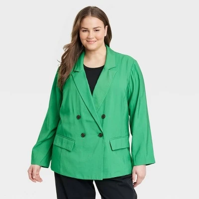 This Essential Blazer from A New Day™ makes a versatile addition to your wardrobe. Made of a breathable fabric blend and poplin lining, this long-sleeve blazer is rendered in a solid shade that allows you to dress your ensemble up or down with just one piece. The double-breasted blazer with a notched collar and front button-down placket lends an elegant look, while the casual-fit silhouette with below-the-hip length and a back vent allows easy layering over your dresses. Wear it with jeans, a turtleneck tee and sneakers for a casual, on-trend look, or pair it with a button-down shirt, tailored trousers or a pencil skirt and pumps for a business-casual office look.