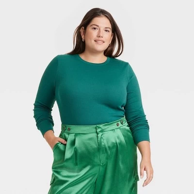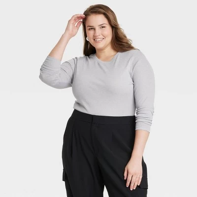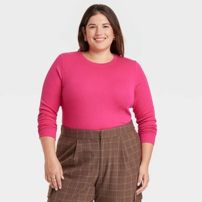 Expand your collection of basics with this Long-Sleeve Slim-Fit Crewneck T-Shirt from A New Day™. This long-sleeve T-shirt in a solid color features a classic crewneck, a ribbed design and a slim silhouette for a fitted look. The casual tee is made from soft, stretchy cotton-blend material for a comfortable fit, and is ideal for layering or wearing on its own. Wear with your choice of bottoms to create a range of versatile styles.