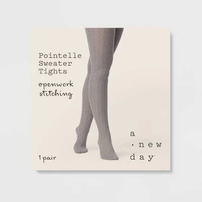 Add the perfect amount of coverage to your cool-weather looks with these Pointelle Sweater Tights from A New Day™. Featuring an openwork stitching pattern for a charming look, these high-waisted sweater tights are crafted from soft, stretchy fabric with opaque sheerness to keep you moving through the day in absolute comfort. From days at the office to casual outings, these closed-toe tights will complete any outfit in style.