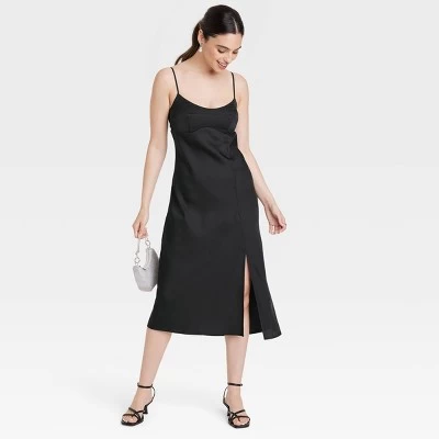 From romantic date nights to days out with friends, this Slip Tank Dress from A New Day™ is the perfect pick for any occasion. Made from lightweight satin fabric for breathable all-day comfort, this sleeveless dress is tailored in a midi length to give you a pretty look. It features a side slit for ease of movement and a touch of drama, while adjustable spaghetti straps help you find the right fit. Accessorize with a necklace and wear your favorite footwear for a complete look.